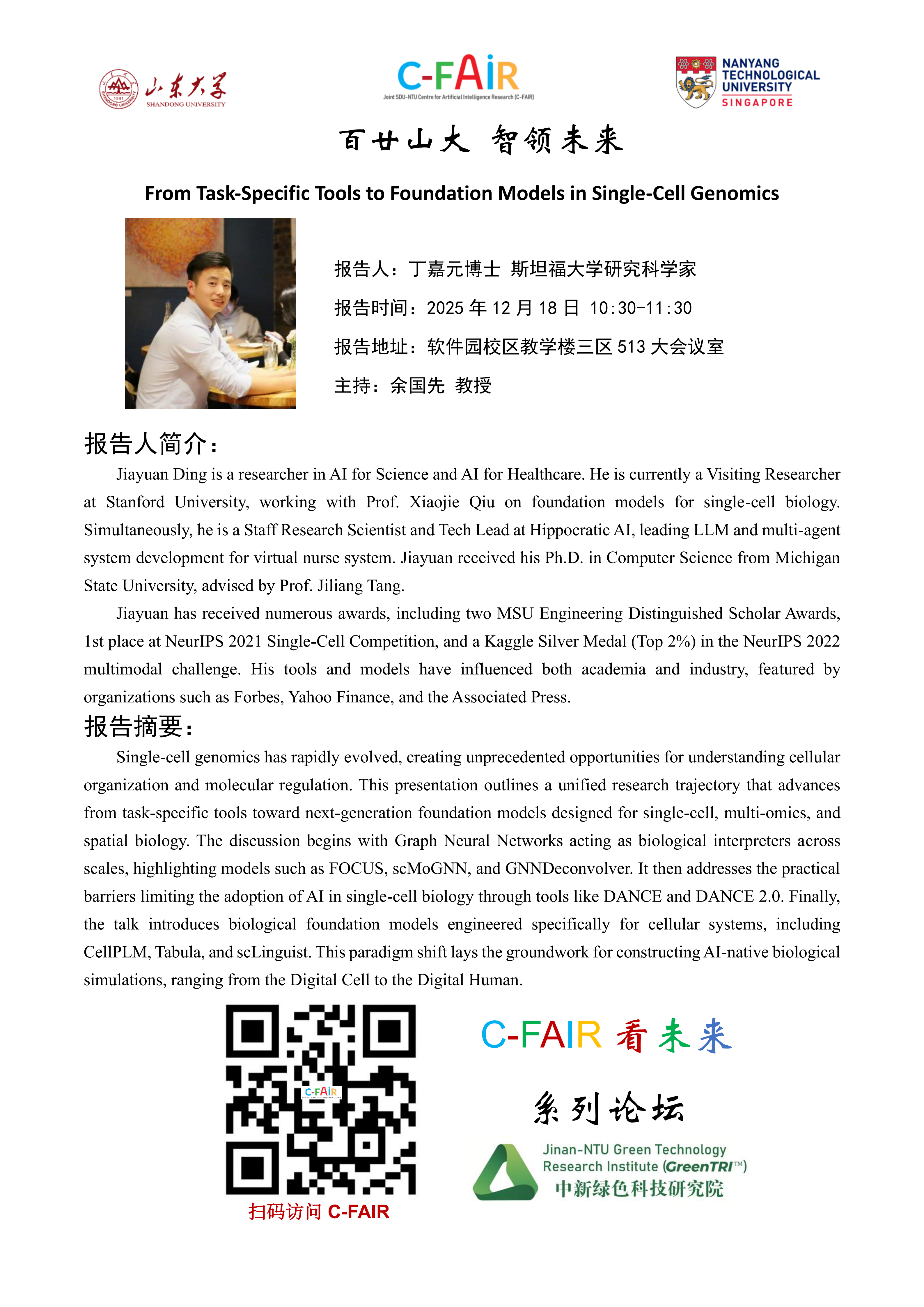 C-FAIR看未来系列论坛:From Task-Specific Tools to Foundation Models in Single-Cell Genomics