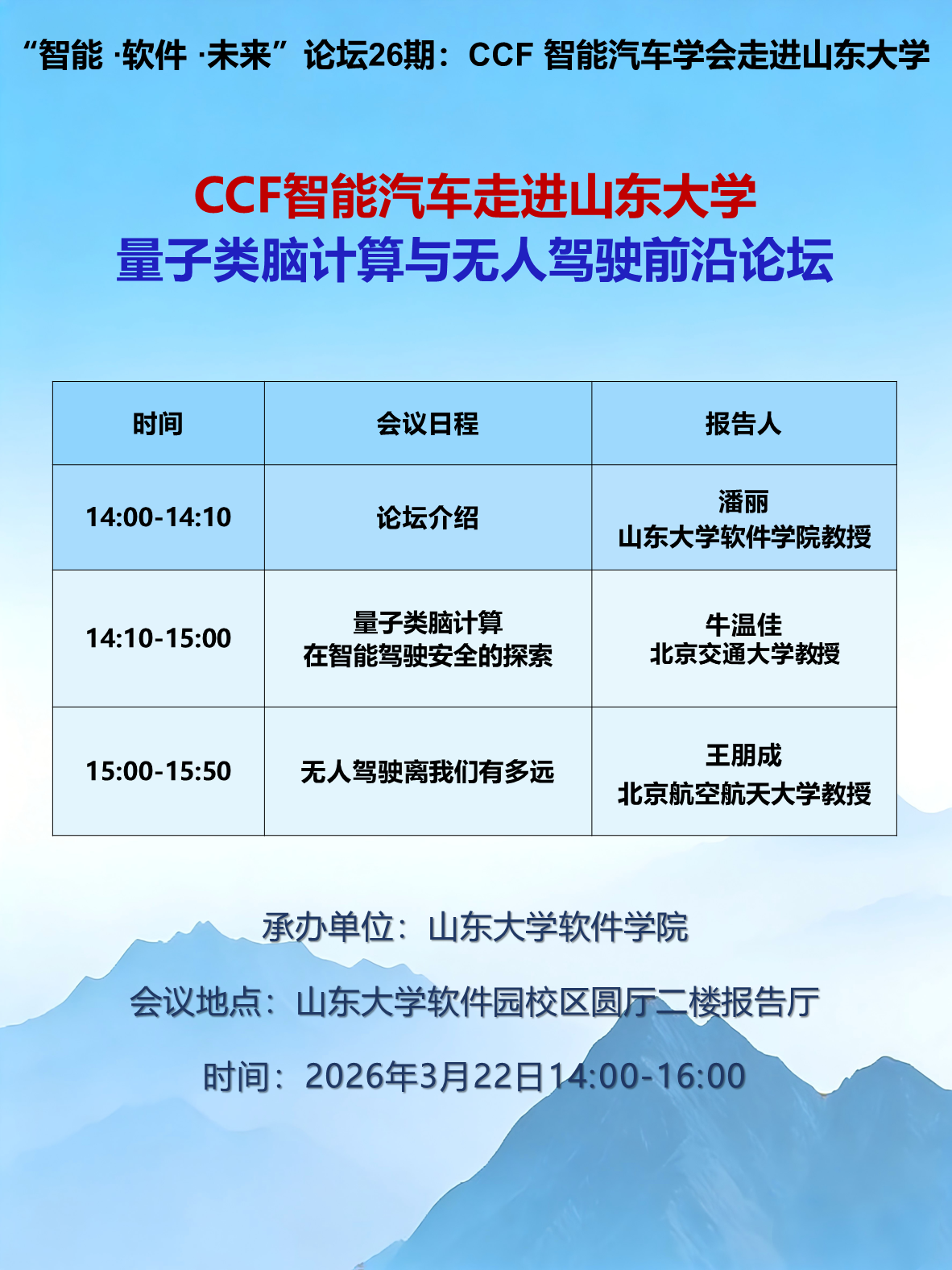 软件学院“智能·软件·未来”论坛第26期:CCF智能汽车学会走进山东大学