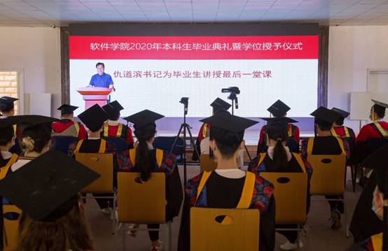6月19日,软件学院举行2020届毕业典礼暨学位授予仪式,软件学院党委书记仇道滨,学位评定委员会副主任徐秋亮,党委副书记吕刚,副院长许信顺、刘士军、刘卫国、周元峰和各位教师代表出席本次活动,党委副书记吴天柱主持。2020届毕业生们身穿学位服,迎来人生中神圣而又光荣的时刻。