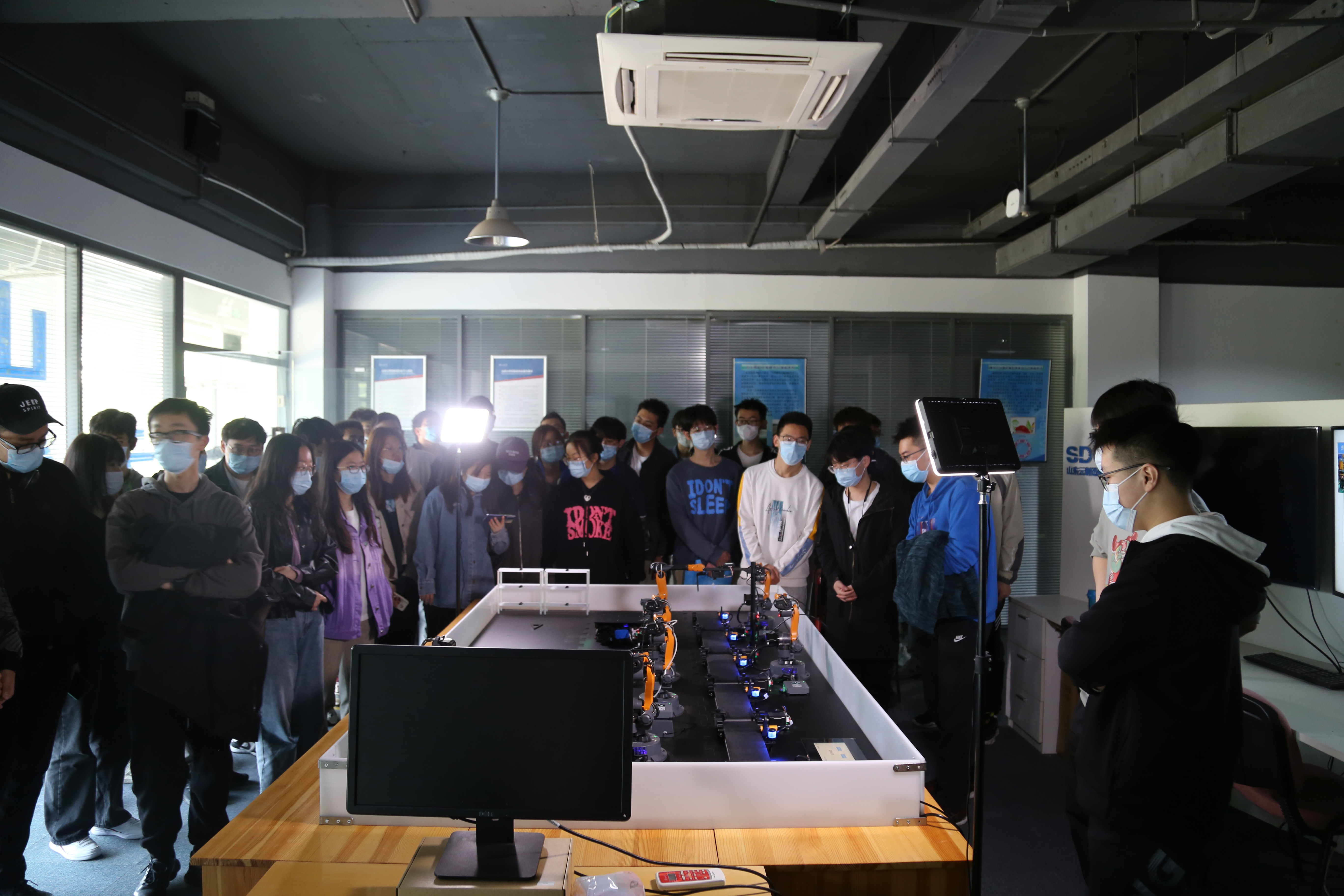 在数媒楼一楼数媒博物馆,同学们听取万林老师对中心历史发展脉络的介绍,了解数媒中心的文化特色;在二楼高性能实验室,万林老师向同学们介绍了山东大学高性能计算云平台的建设概况、相关数据指标、以及当前国内高校和科研院所高性能计算云平台的建设情况;在三楼的人机交互实验室和四楼的前瞻科技实验室,各实验室的代表们通过现场演示、互动,向参观的同学分别介绍了各实验室的科研方向、科研成果以及团队成员,吸引广大同学提前加入科研团队,体验科研生活;在负一层,参观学生在研究生的带领下,体验中试平台的科技成果转化项目。
