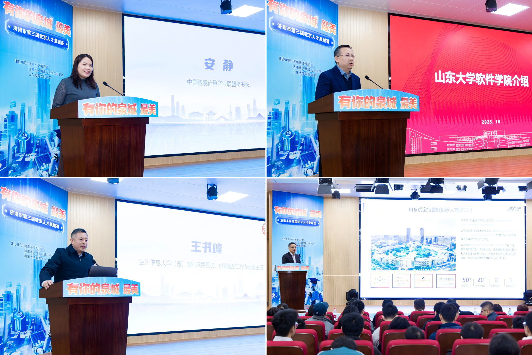 开幕式上,中国智能计算产业联盟秘书长安静,软件学院院长崔立真,空天信息大学(筹)临时党委委员、内涵建设工作专班副主任王书峰,山东优宝特智能机器人有限公司董事长范永先后作专题报告。