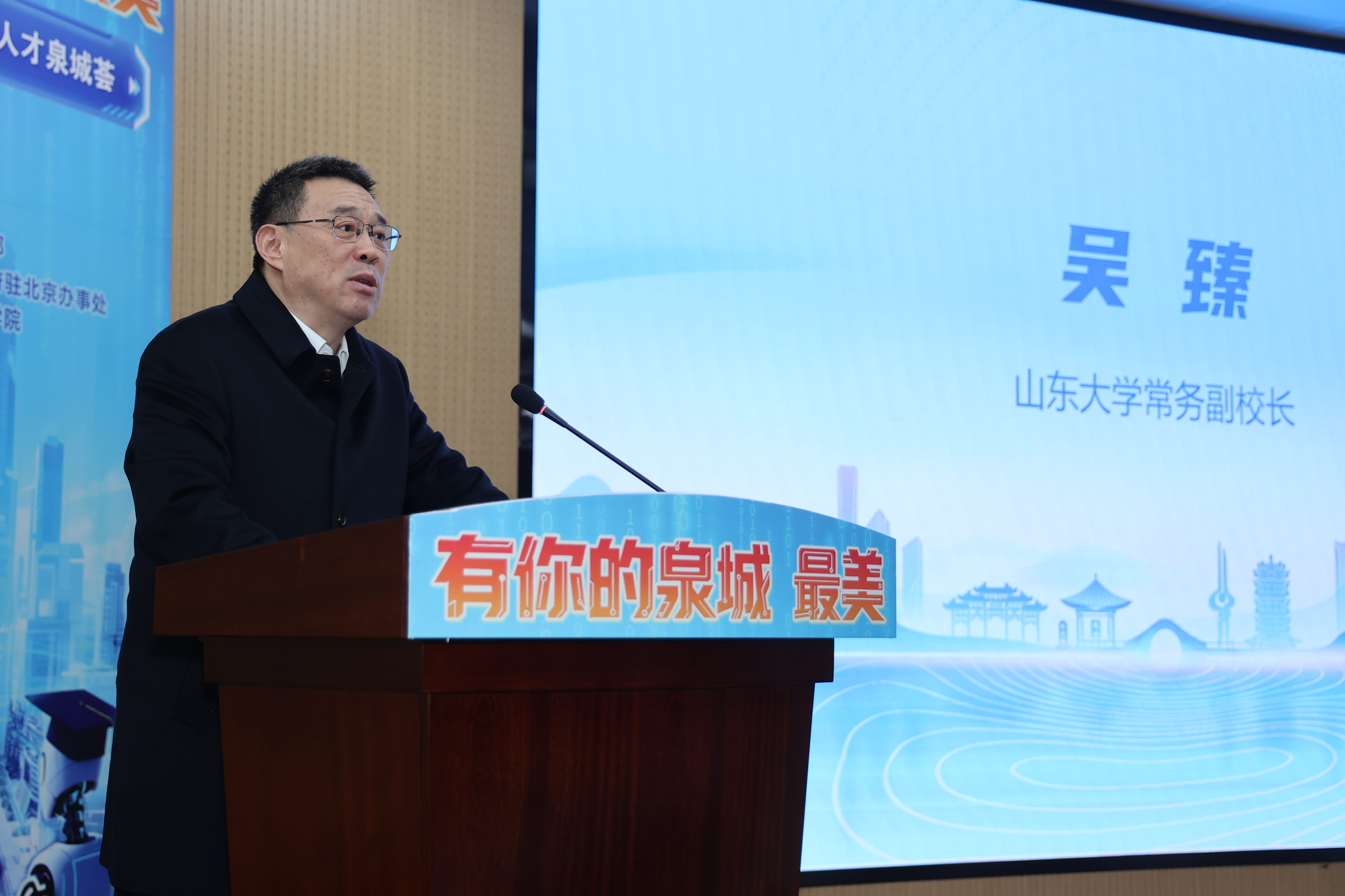 吴臻在致辞中表示,泉城荟活动架起京鲁人才桥梁,并选择在山大举办,就是以山大为样例,向各位专家、各位青年才俊展现“近悦远来”的人才环境,发出“此城可栖”的诚挚邀请,我们有信心、有能力,全方位为大家成长发展保驾护航。