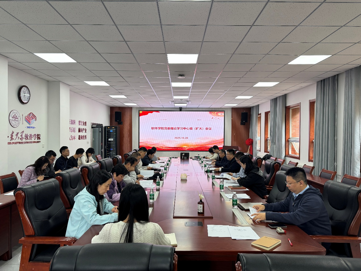 10月28日上午,软件学院召开党委理论学习中心组(扩大)会议,专题学习党的二十届四中全会精神。软件学院党委书记姜炳刚主持会议并领学全会精神,院长崔立真参加会议。