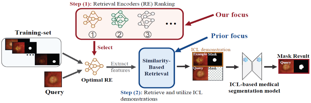 成果九:Retriever Encoder Selection Matters for In-Context Learning-based Medical Segmentation 。软件学院博士生王帆为该篇文章的第一作者,尹义龙教授和韩忠义教授为共同通讯作者。