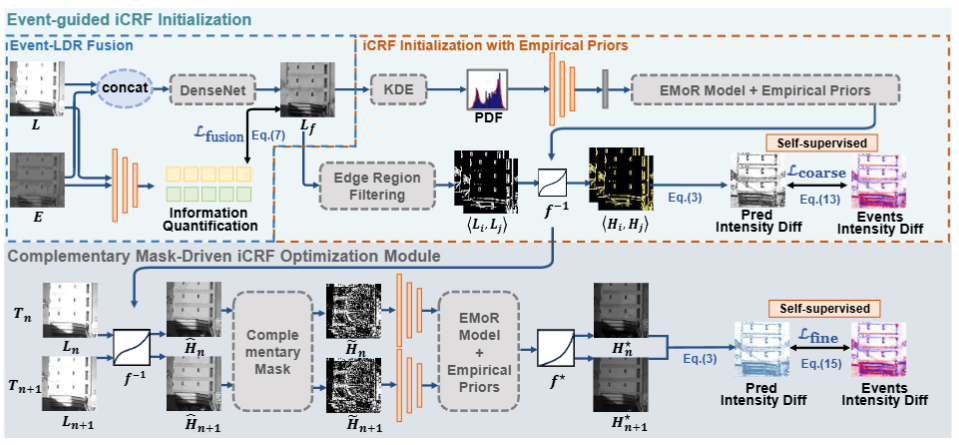 成果五:Ev-iCRF: Self-supervised Event-guided iCRF Estimation for HDR Image Reconstruction。软件学院博士生郭旭城该篇文章的第一作者,沈益冉教授为通讯作者。
