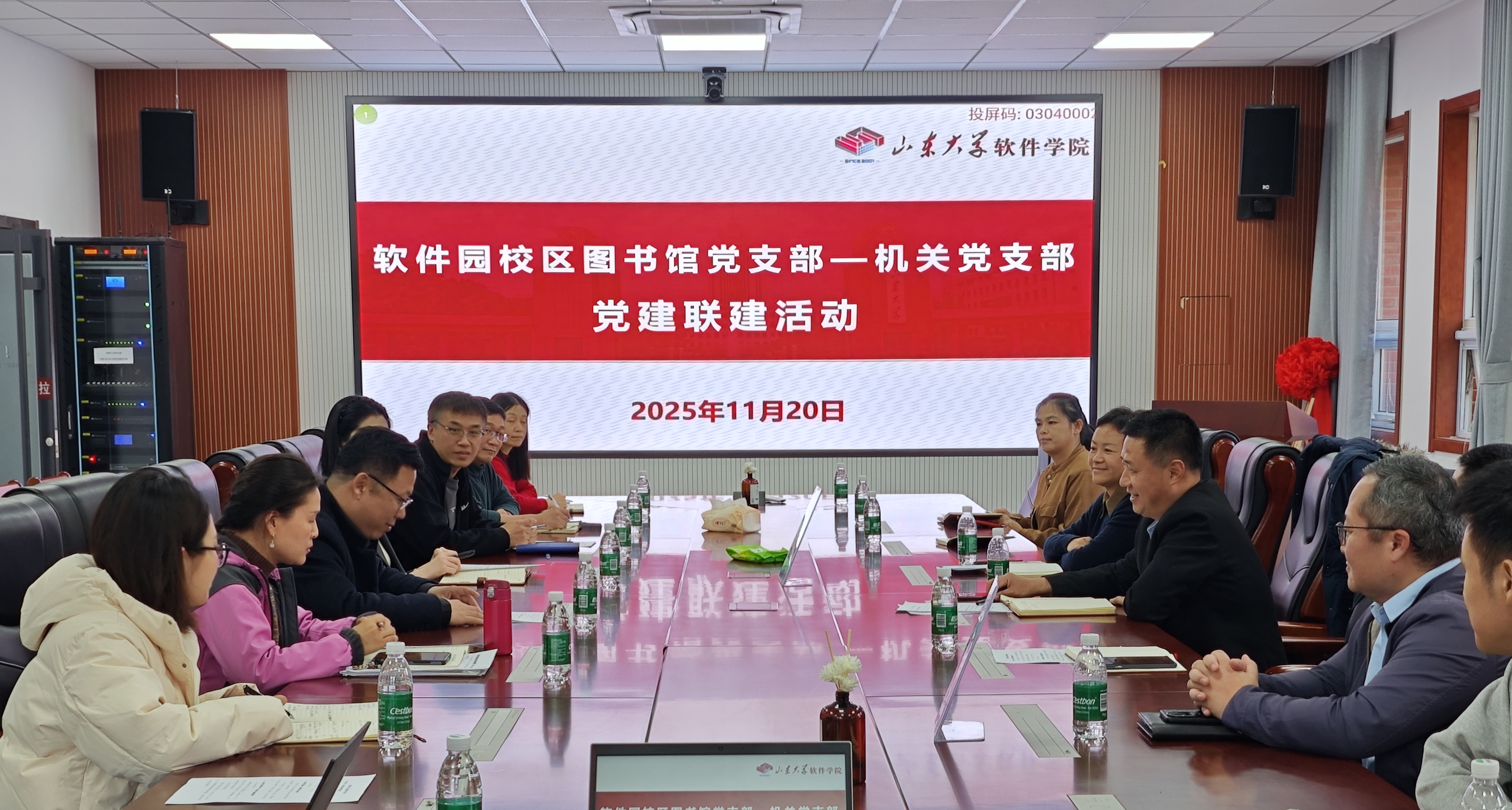 为深入推动党建与业务深度融合,充分发挥基层党组织战斗堡垒作用和党员先锋模范作用,11月20日下午,软件学院机关党支部与软件园校区图书馆党支部联合开展党建共建活动。软件学院党委书记姜炳刚、党委副书记孙玮茄,图书馆副馆长程川生参加活动。