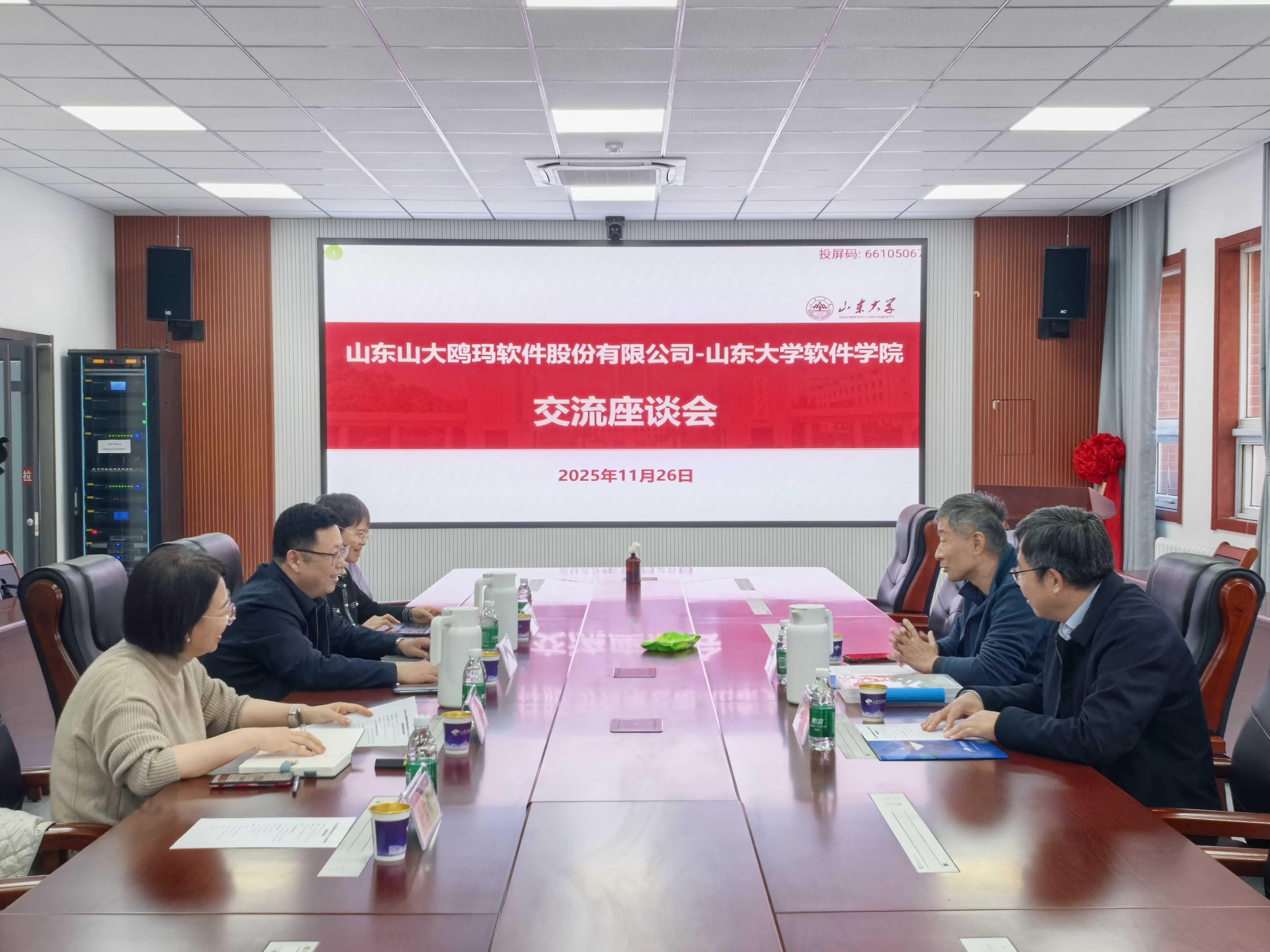 11月26日下午,山东山大鸥玛软件股份有限公司名誉董事长、鸥玛人工智能创新研究院院长马磊,副总经理、鸥玛人工智能创新研究院副院长袁峰一行访问软件学院,围绕校企合作等展开深入交流。软件学院党委书记姜炳刚参加会议,党委副书记周广鹏主持会议。