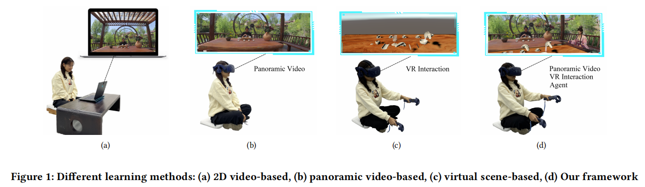 在此基础上,研究进一步引入具备教学能力的LLM智能代理,对学习者的操作过程进行实时分析,并提供个性化、情境化的指导与反馈,有效减轻了学习过程中的认知负担。团队以茶艺学习为应用场景构建了完整的系统原型,并通过用户实验验证了该方法在可用性、学习体验和学习效果方面的优势。该研究为虚拟现实示范式训练提供了一种可扩展、智能化的新范式,对文化技能学习、职业技能培训等领域具有重要的应用价值,也展示了人机协同与人工智能赋能沉浸式学习的广阔前景。