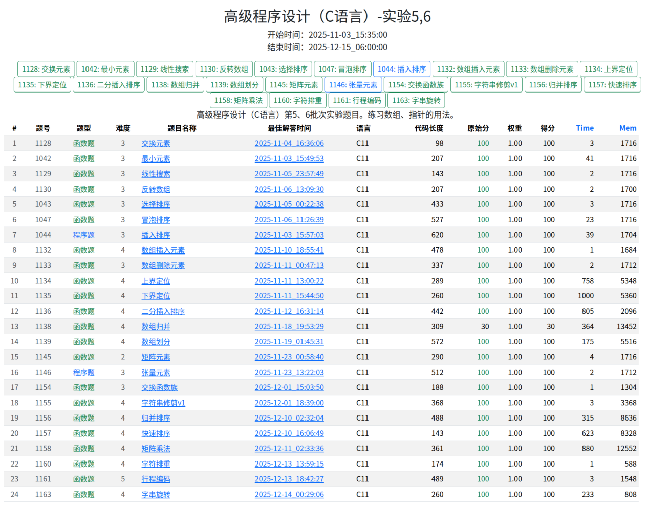 作为面向2025级计算机类书院制新生的专业基础课程,《高级程序设计》由软件学院主导建设,联合集成电路学院共同授课。课程组在学期初即构建了“学-练-测”一体化数字评价体系:基于《信息学竞赛大纲》研发的智能题库系统,通过10级难度梯度划分实现作业精准推送,保障课程作业环节紧扣教学目标;自主研发的自动评测系统支持学生实时获得反馈,有效培养逻辑思维能力。软件学院自主研发的数字化平台(www.csplab.cn)已历经特色班选拔、研究生复试、计算机编程竞赛等应用场景的多次验证,此次成功拓展至全过程教学评价并取得成功。