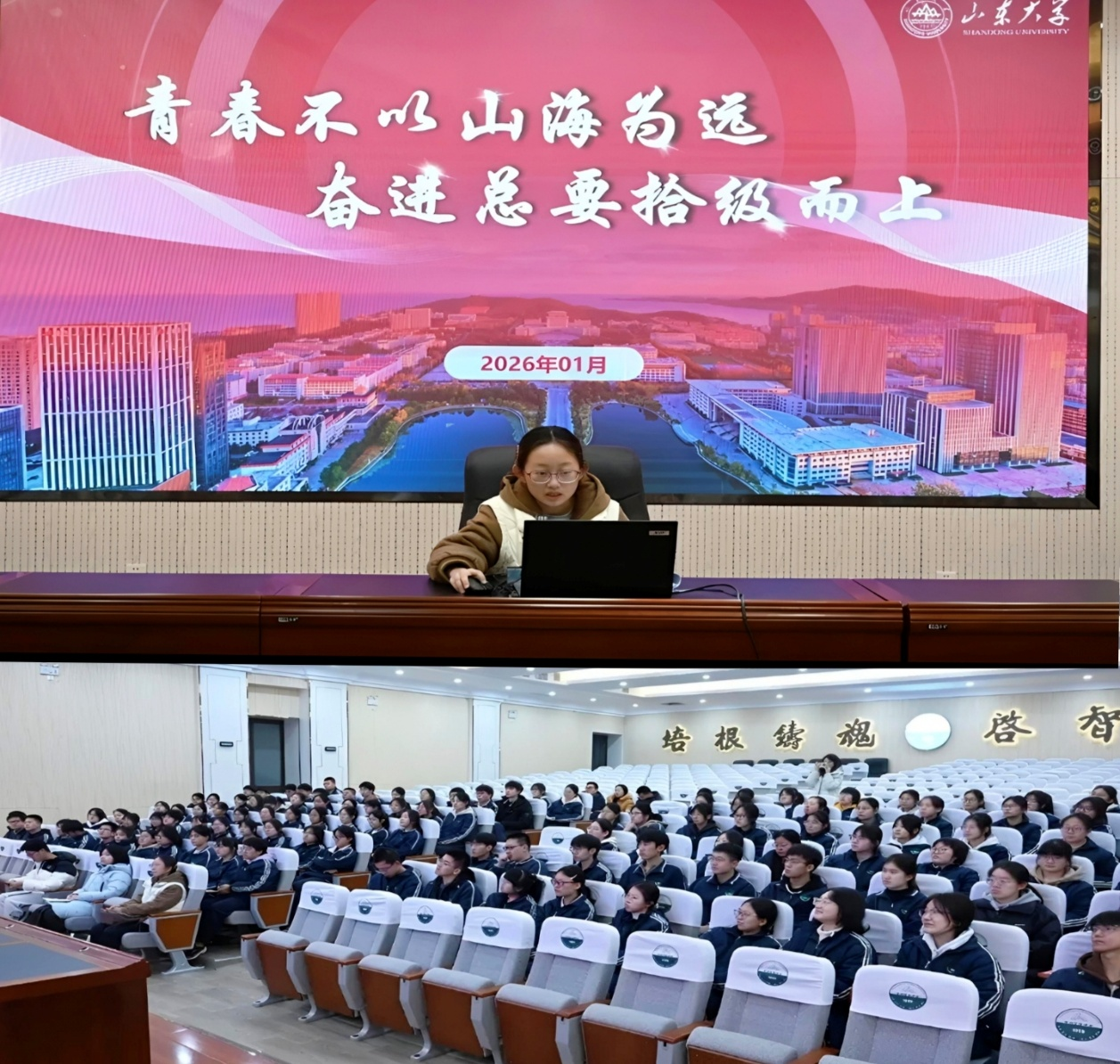 山东大学“天启四骑士”实践活动小组开展母校回访实践活动,通过主题宣讲、互动答疑、经验分享等形式,向母校学弟学妹介绍山大校史文化、学科优势与招生政策,以实际行动传递山大精神。