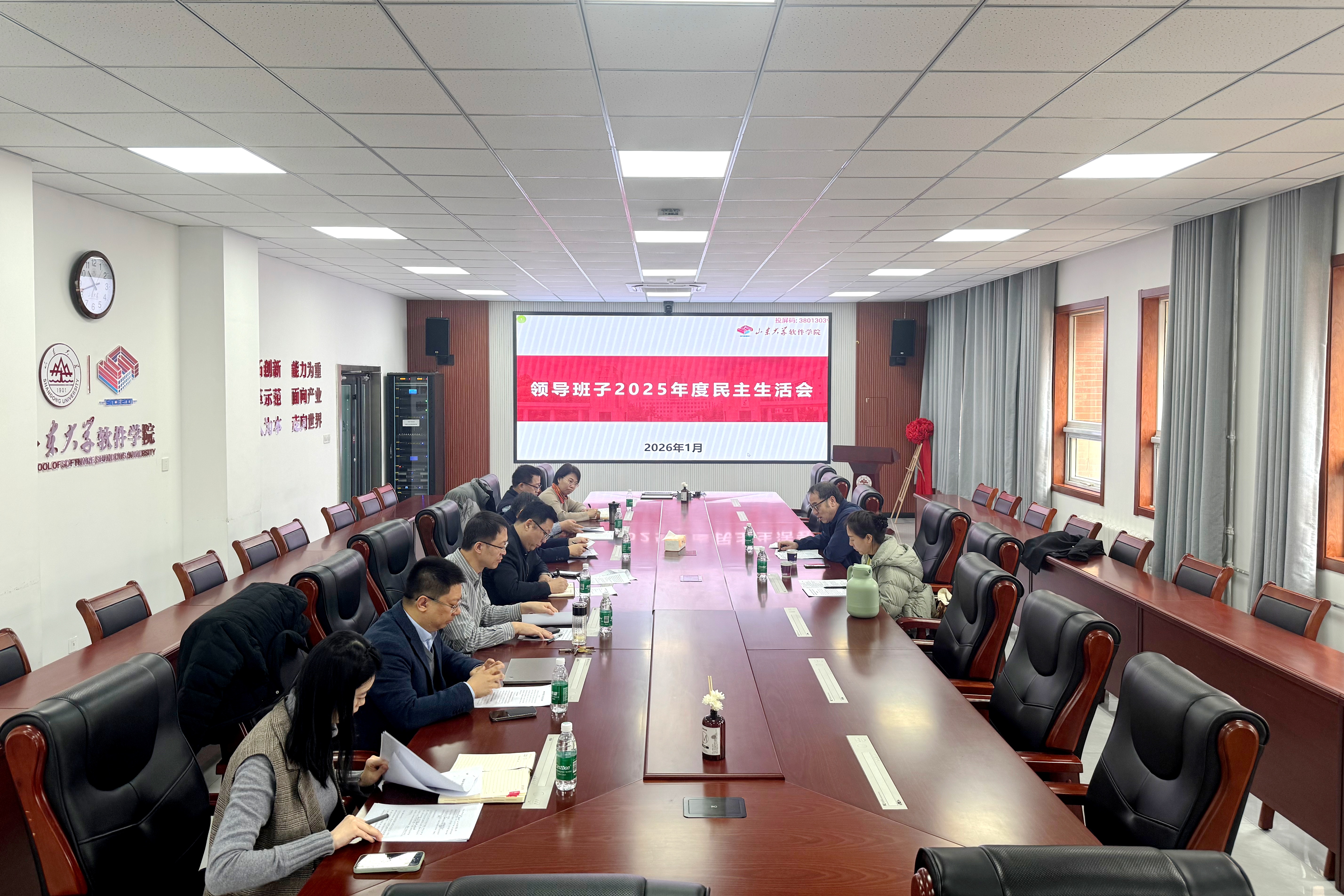 1月29日上午,软件学院召开2025年度领导班子民主生活会。学校党建考核督导组第二组组长郭举修、成员赵婧婧到会指导。学院党委书记姜炳刚主持会议,院长崔立真、领导班子成员参加会议。