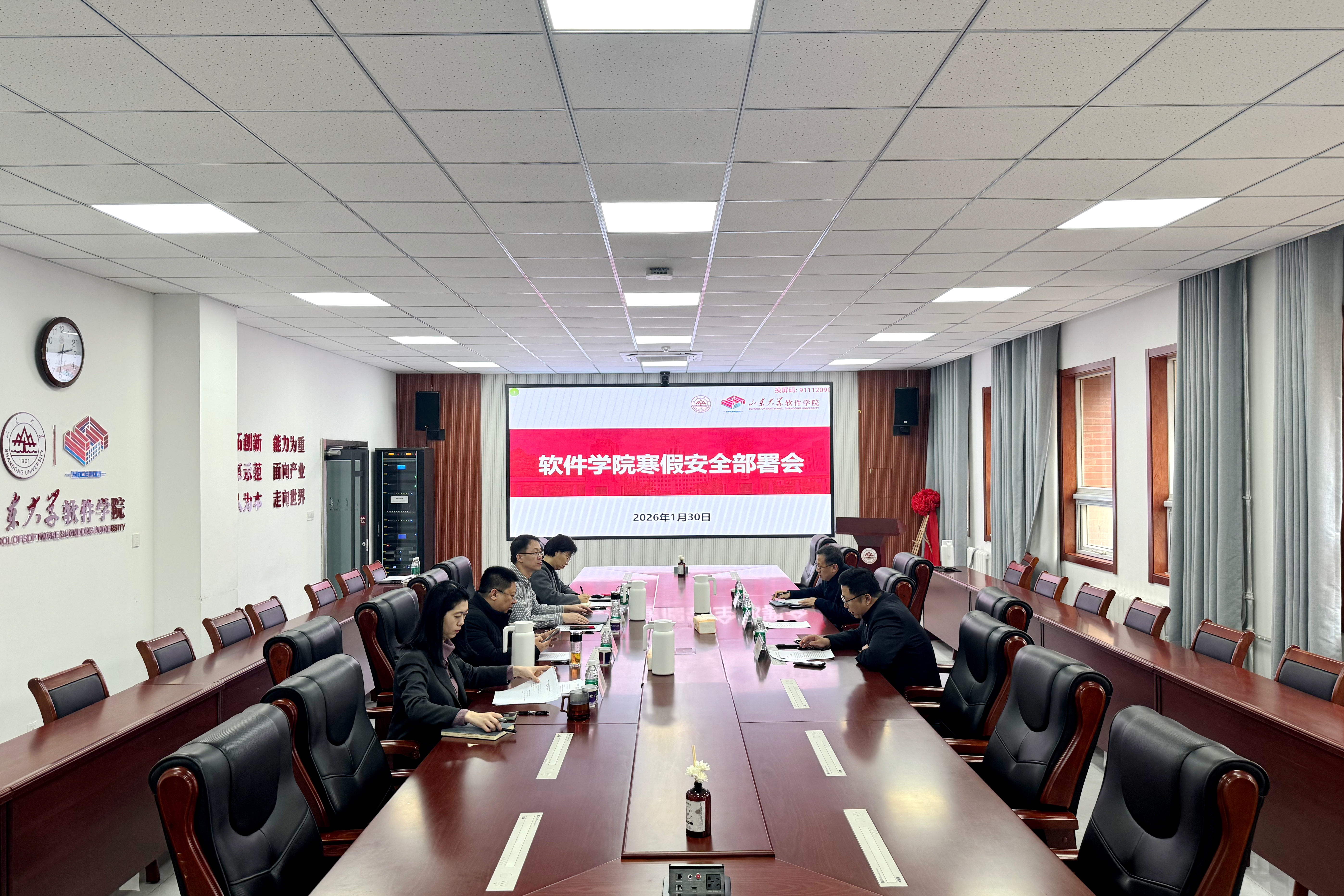 1月30日下午,软件学院召开寒假安全工作部署会。学院党委书记姜炳刚主持会议,院长崔立真、领导班子成员参加会议。